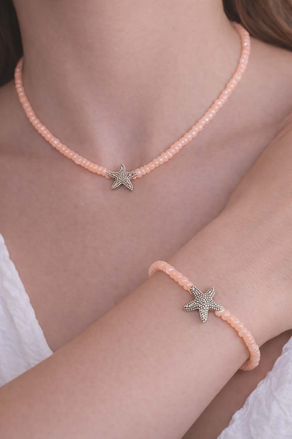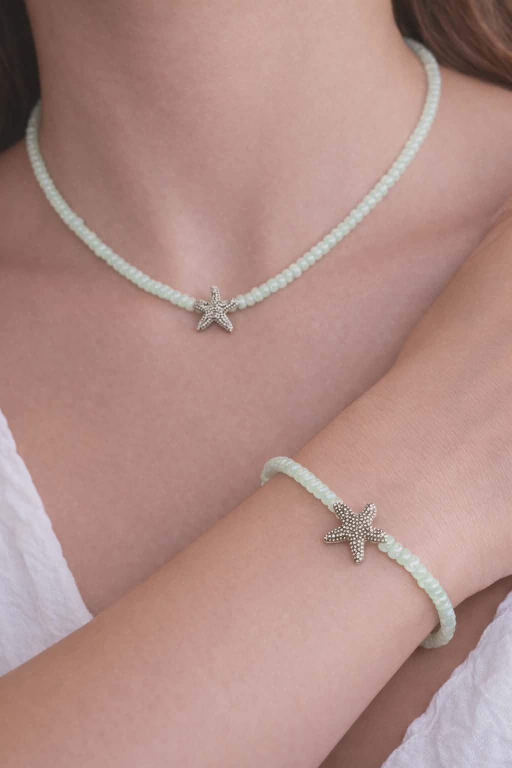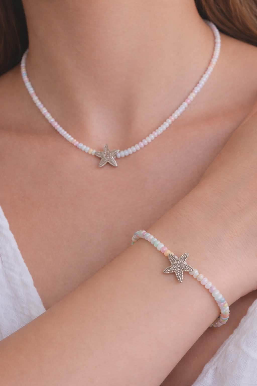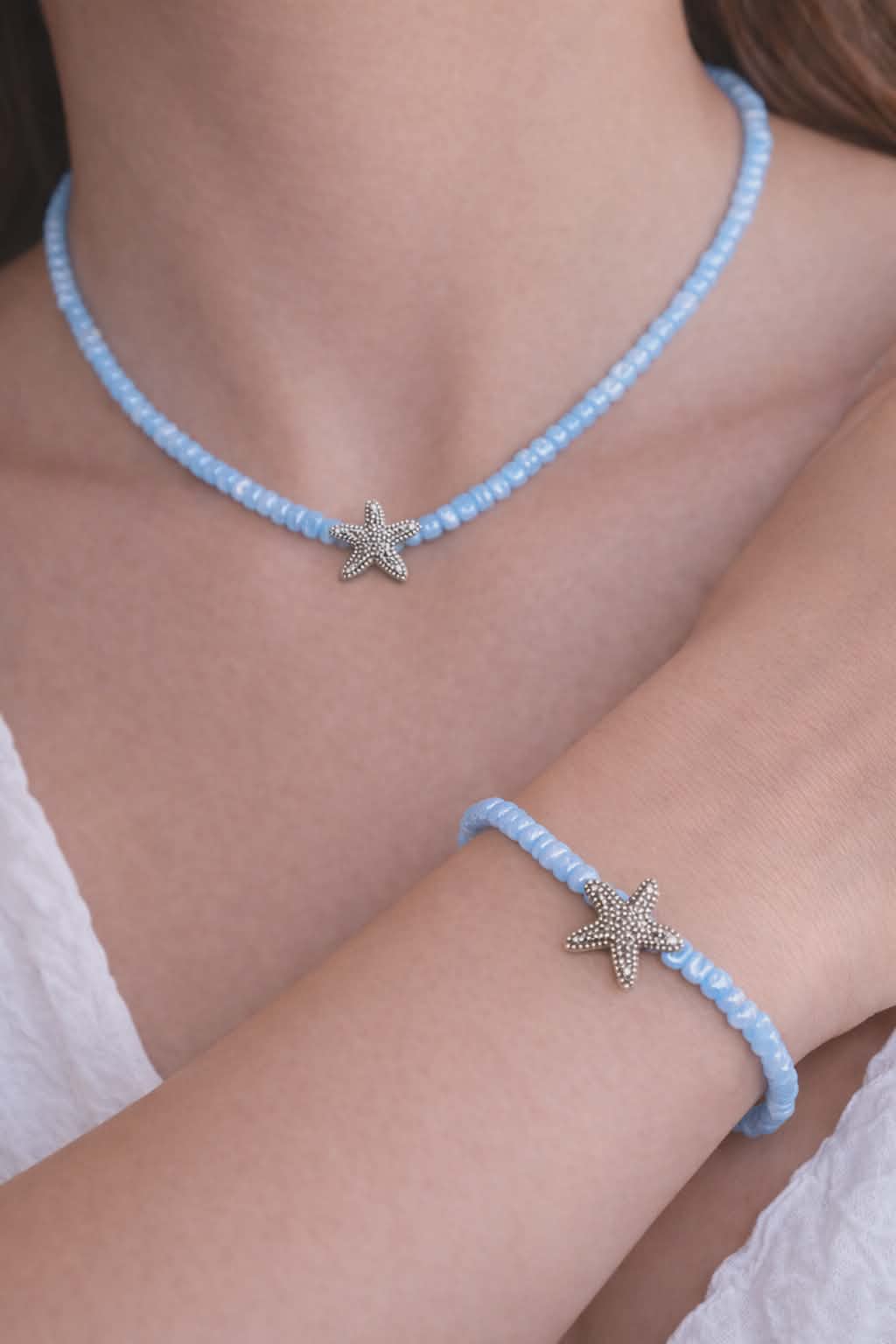 A coleção Estrela do Mar Encantada traduz a beleza e a leveza do oceano em peças delicadas e cheias de charme. Com miçangas em cores suaves e vibrantes, combinadas com o detalhe encantador da estrela-do-mar, cada acessório traz um toque de verão, liberdade e feminilidade.Inspirada nas cores do mar, do céu e dos corais, essa coleção é perfeita para quem ama um estilo leve, alegre e cheio de personalidade.