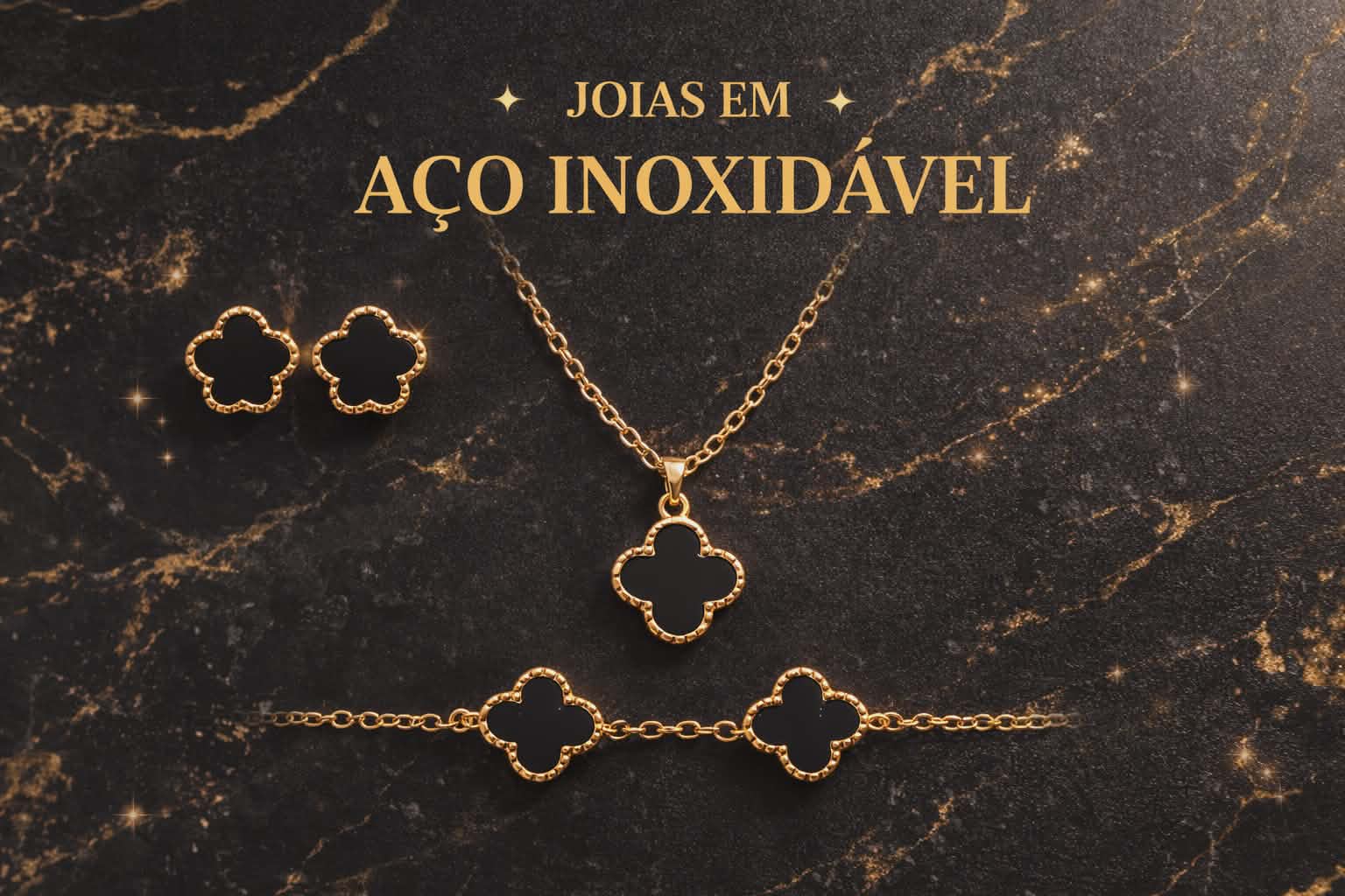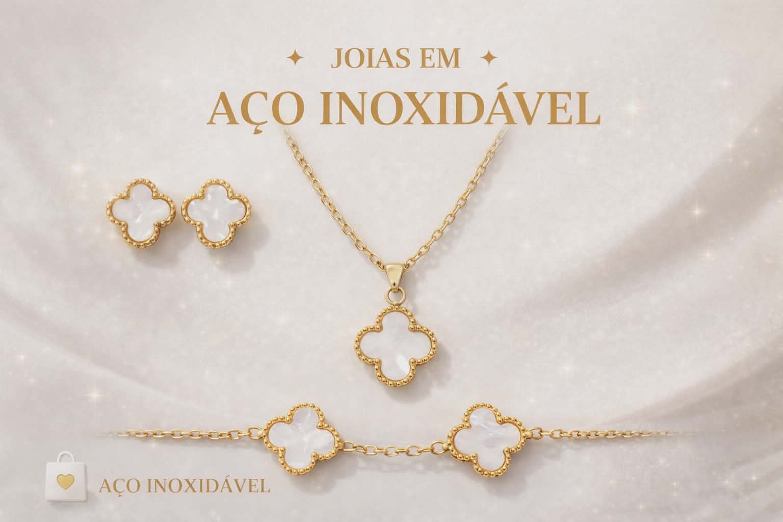 Conjunto Trevo Elegante – Aço Inox ✨