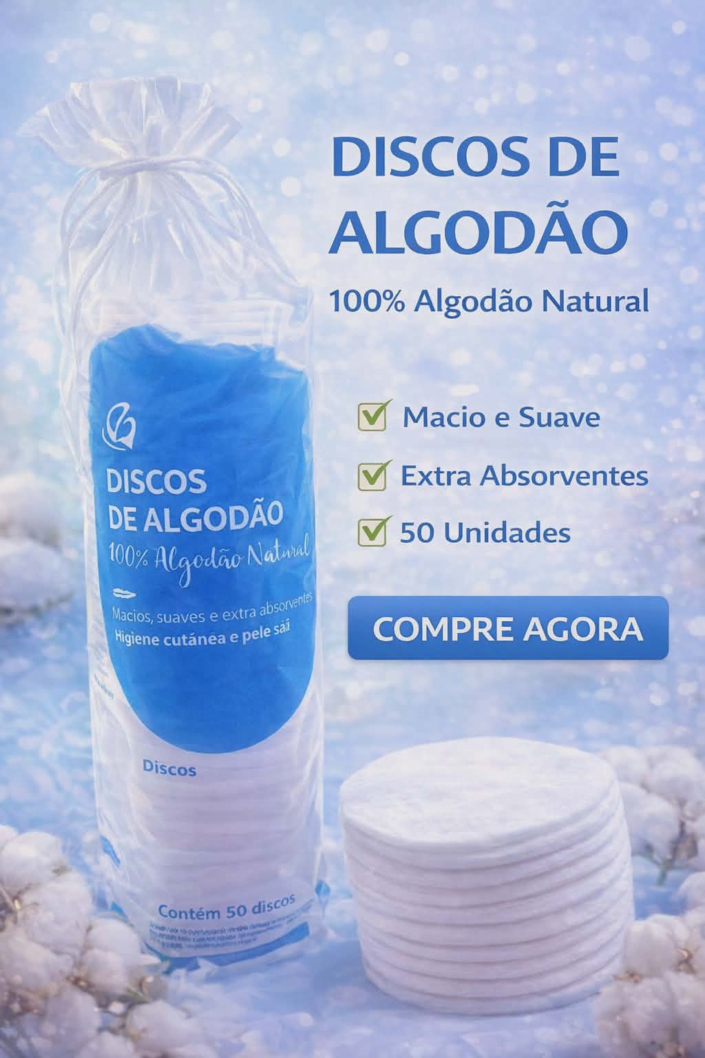 Os Discos de Algodão são perfeitos para a remoção de maquiagem, aplicação de tônicos e limpeza facial. Com textura macia e ultra-absorvente, proporcionam um cuidado suave e eficaz para todos os tipos de pele.